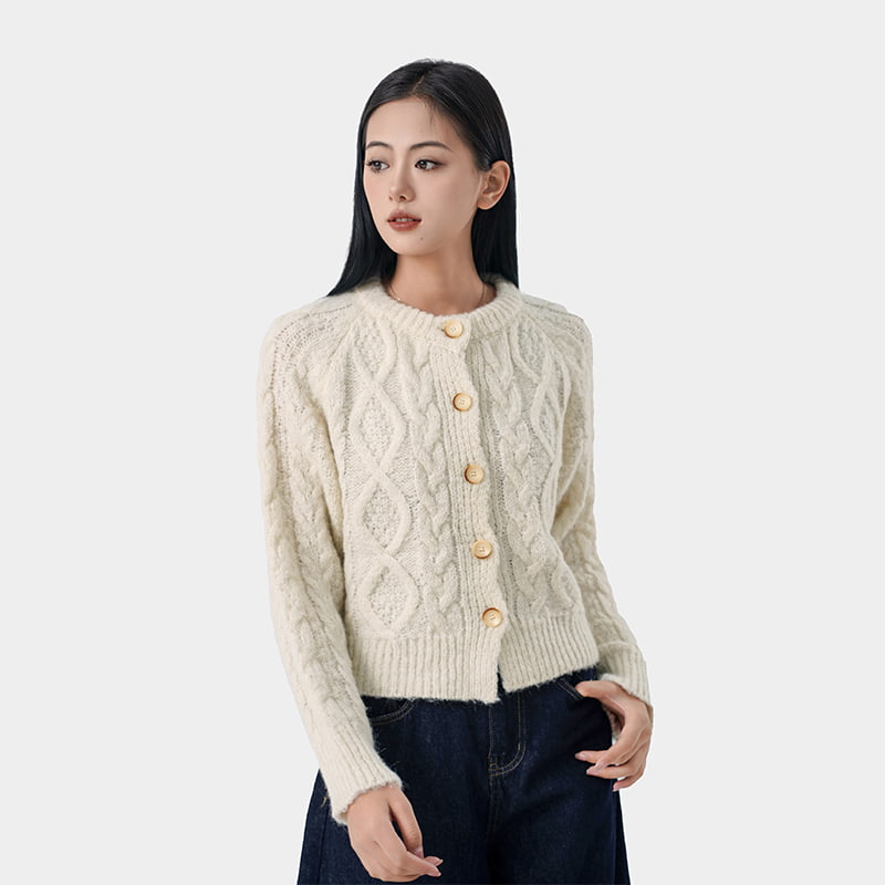 Dlouhé kardigany, styly s otevřeným předním dílem a silnější úplety fungují dobře. V případě potřeby použijte pásy nebo poloviční zastrčení k vytvoření definice střední čáry. Masivnější textury doplňují výšku; kratší zkrácené kardigany lze také použít k vytvoření proporčního kontrastu s kalhotami s vysokým pasem.